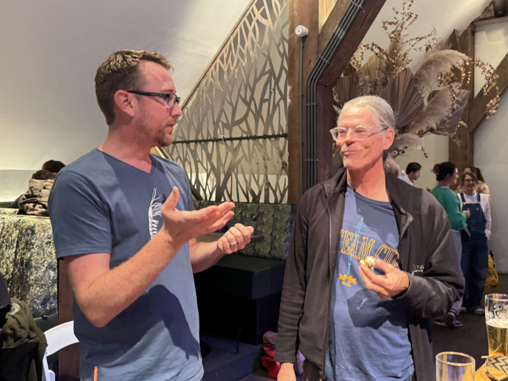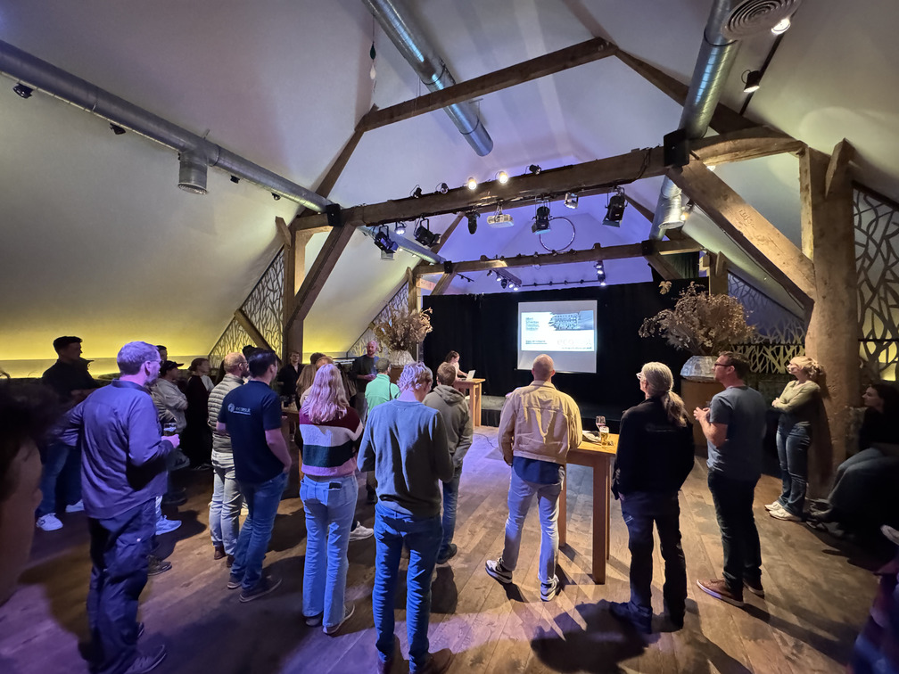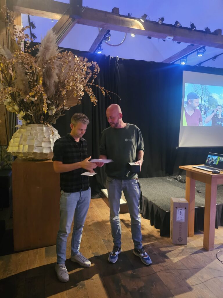 Tijdens de bijeenkomst was er ook een feestelijk moment: we feliciteerden onze collega Bas die 12,5 jaar bij Ecoresult in dienst is. Leon prees zijn enorme passie voor de natuur en zijn indrukwekkende soortenkennis, in het bijzonder die van vogels en nachtvlinders, en bedankte hem voor zijn jarenlange inzet.
