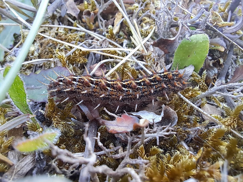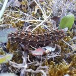 1. Rups duinparelmoervlinder – Onder een duinviooltje, met collega’s op Texel.