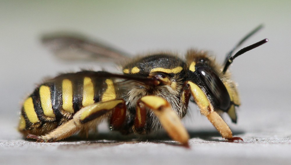 3. Grote wolbij: In zijn tuin probeert Bastiaan zoveel mogelijk bijensoorten te vinden. De grote wolbij maakt dankbaar gebruik van Ezelsoor en het insectenhotel.