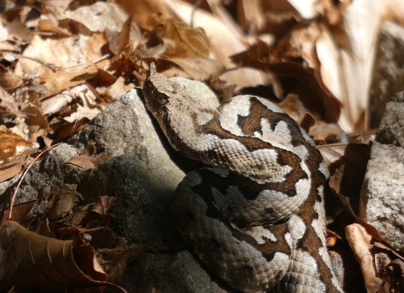 3. Zandadder (Vipera ammodytes) waargenomen in de bergen tijdens een onderzoekstage in Roemenië.