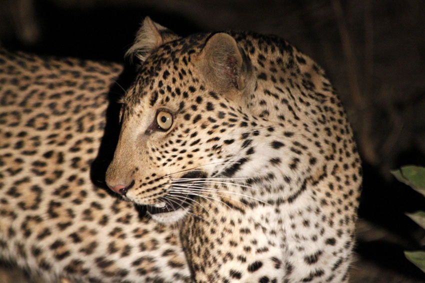2. Luipaard tijdens nachtonderzoek in Bouba Ndjida NP in noord Kameroen.