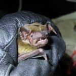 3. Roel houdt een tweekleurige vleermuis vast tijdens een zomerkamp van de Zoogdiervereniging in Albanië.